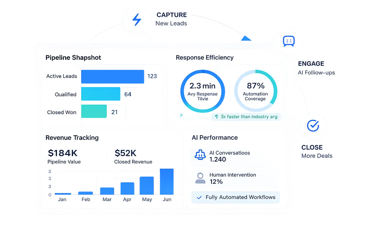 Conversational AI Agents: Custom-trained chat and voice agents that qualify leads 24/7.